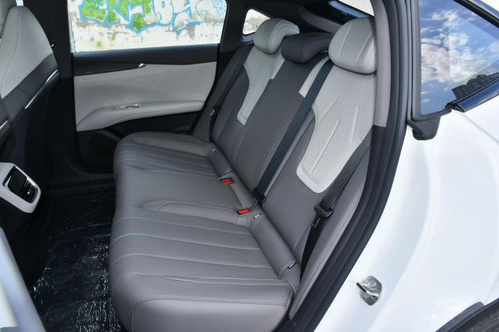 深蓝L07的后排空间满足家用没问题,2米9的长轴距带来的宽裕感让后排乘坐体验更加舒展。身高175cm的乘客进入后排,腿部空间达到两拳以上,头部空间仍有一拳左右。