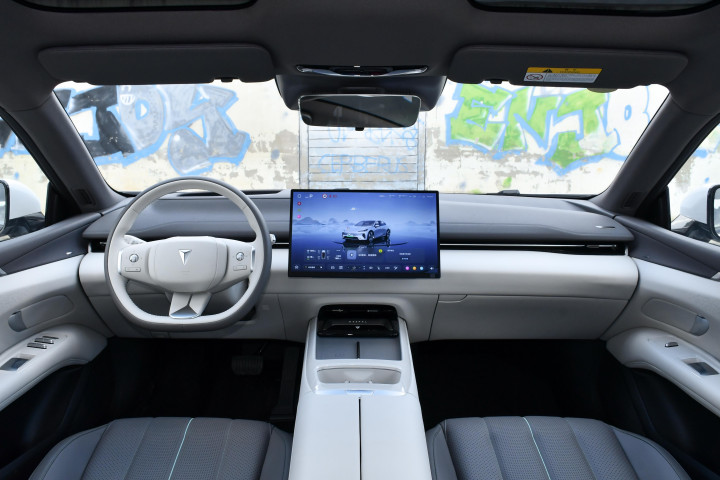 深蓝L07的内饰则是另一种调调,走极简风格,大尺寸悬浮屏占C位,物理按键很少。用料也不错,大面积软包、渐变亲肤膜片装饰件等大量精致细节,有一定的科技豪华感。中控台上的15.6英寸中控屏还是个向日葵屏(部分高配车),能左右15°偏转,不管你坐在驾驶位还是副驾驶位,操作和查看信息都很方便。这次新车还在后排加入了触控屏,后排乘客可以通过它独立控制空调温度,使用起来更便捷。另外,26款深蓝L07后排还提供拓展双PAD解决方案,这对家里有小孩或者喜欢在后排娱乐的人来说也更为友好了。